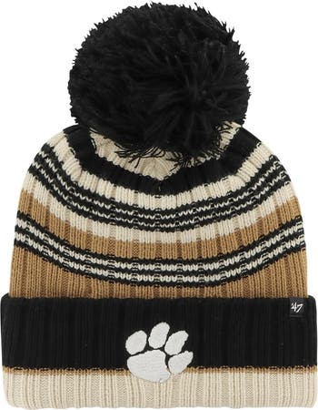 Warm your noggin with a stylish showing of Clemson Tigers spirit by snagging this Barista knit hat from '47. It features a bold Clemson Tigers graphic embroidered on the cuff and a multi-colored striped design to top things off excellently. The pom offers a jovial spin that's all the more welcome when you want some added head warmth.