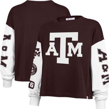 Rep the Texas A&M Aggies with this Sydney Long Sleeve T-Shirt from '47. The dropped shoulder seams provide a roomier fit, ideal for layering or lounging, while the contrast-colored sleeves add a touch of sporty style. Plus, the printed team graphics on the chest and arms boldly display your unwavering Texas A&M Aggies pride.