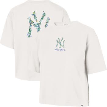 Show off your New York Yankees pride in style with this Full Bloom Cropped T-Shirt from '47. Designed with a relaxed and boxy fit, this soft cotton tee offers a loose and roomy feel with dropped shoulder seams for maximum comfort. The flower-themed team logo graphic on the chest adds a unique flair, making this an eye-catching choice for any afternoon at the ballpark or around town.