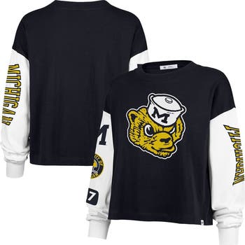 Rep the Michigan Wolverines with this Sydney Long Sleeve T-Shirt from '47. The dropped shoulder seams provide a roomier fit, ideal for layering or lounging, while the contrast-colored sleeves add a touch of sporty style. Plus, the printed team graphics on the chest and arms boldly display your unwavering Michigan Wolverines pride.