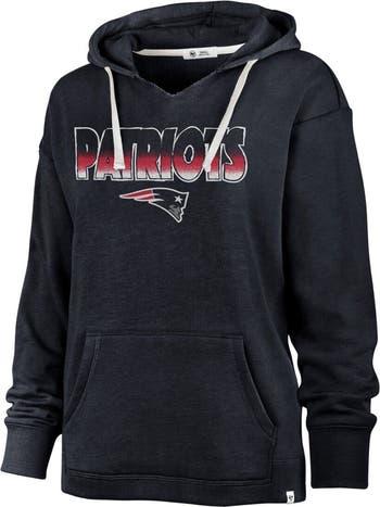 The Women's '47 Navy New England Patriots Color Rise Kennedy Pullover Hoodie is the perfect way to show your unwavering support for the New England Patriots. Crafted from a soft cotton and polyester blend, this midweight hoodie features distressed screen print graphics that proudly display your team pride. The drop shoulder and flatlock stitching provide a comfortable fit, while the front pouch pocket and drawstring hood offer added functionality. Whether you're cheering from the stands or simply showing your support, this hoodie is a must-have for any New England Patriots fan.