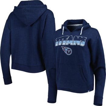 The Women's '47 Navy Tennessee Titans Color Rise Kennedy Notch Neck Pullover Hoodie is the perfect way to show your support for the Tennessee Titans. Made from a comfortable cotton and polyester blend, this midweight hoodie features a distressed screen print graphic of the Tennessee Titans logo, a drop shoulder for a relaxed fit, and a hood with a drawstring for added warmth. Whether you're cheering on the Titans at the stadium or just relaxing at home, this hoodie is sure to keep you comfortable and stylish.