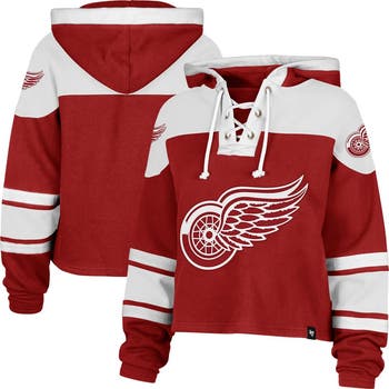 Women's '47 Red Detroit Red Wings Cropped Superior Lacer Pullover Hoodie