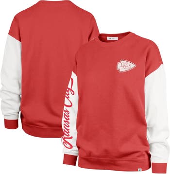 This '47 Double Header Rise Andie Pullover Sweatshirt lets you rep your Kansas City Chiefs pride in style and comfort. This ultra-soft sweatshirt features color-block sleeves and an oversized fit for a casual, comfy feel. Printed team graphics on the left chest and right sleeve let everyone know who you're rooting for on game day.