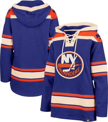 Stay warm and stylish while repping the New York Islanders in this '47 Superior Lacer Pullover Hoodie. This lace-up hoodie is crafted with a cozy fleece lining, making it ideal for moderate temperatures or layering on chilly game nights. Featuring embroidered fabric appliques, the bold Islanders graphics on this hoodie make it clear which team you cheer for.