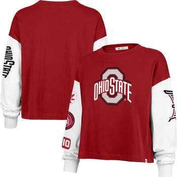 Rep the Ohio State Buckeyes with this Sydney Long Sleeve T-Shirt from '47. The dropped shoulder seams provide a roomier fit, ideal for layering or lounging, while the contrast-colored sleeves add a touch of sporty style. Plus, the printed team graphics on the chest and arms boldly display your unwavering Ohio State Buckeyes pride.