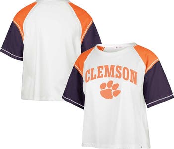 The Women's '47 White Clemson Tigers Serenity Gia Cropped T-shirt is the perfect way to show your support for the Clemson Tigers. Made from soft cotton, this cropped tee features distressed screen print graphics and flatlock stitching for a comfortable and stylish fit. Whether you're cheering on the Tigers at the game or relaxing at home, this tee is sure to become a favorite.