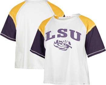 The Women's '47 White LSU Tigers Serenity Gia Cropped T-shirt is the perfect way to show your support for the LSU Tigers. Made from soft cotton, this cropped tee features glitter screen print graphics that will make you stand out from the crowd. Flatlock stitching and a cropped design give this tee a stylish and comfortable fit. Whether you're cheering on the Tigers at the game or just showing your support around town, this tee is a must-have for any LSU Tigers fan.