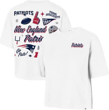 Slip into this New England Patriots Collage Script Reed City T-Shirt by '47 and bring a little team spirit to your everyday look. Designed to hit right at the hip for a fresh, modern fit, this tee blends easy comfort with standout style. A clean script graphic at the left chest sets the tone, while the lively collage-style artwork on the back captures the fun, festive spirit of New England Patriots fandom. It's the perfect piece for anyone who wants their team pride to feel effortlessand look good from every angle.