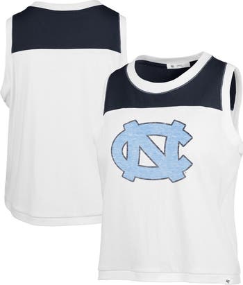 The Women's '47 White North Carolina Tar Heels Premier Zoey Waist-Length Tank Top is the perfect way to show your support for the Tar Heels. With its distressed screen-print graphics and cropped, rounded hem, this tank top is both stylish and comfortable. The crew neck and cotton material make it perfect for any occasion, whether you're cheering on the Tar Heels at the game or just relaxing at home.