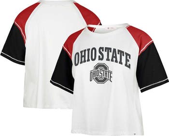 The Women's '47 White Ohio State Buckeyes Serenity Gia Cropped T-shirt is the perfect way to show your support for the Ohio State Buckeyes. Made from soft cotton, this cropped tee features glitter screen print graphics of the Ohio State Buckeyes logo, making it a stylish and comfortable way to cheer on your team. Flatlock stitching and a cropped design add a touch of style, while the Ohio State Buckeyes logo proudly displays your allegiance. Whether you're at the game or just hanging out, this tee is sure to show your Ohio State Buckeyes pride.