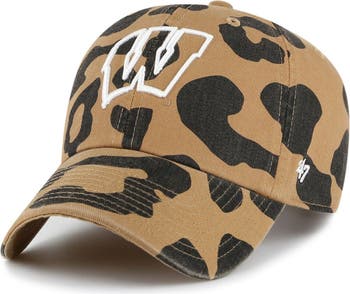 Add some flair to your Wisconsin Badgers game day look by sporting this '47 Rosette Clean Up hat. It features an allover leopard print that offers added appeal to the classic Wisconsin Badgers embroidery. An adjustable closure provides a customized fit for comfortable wear all day long.