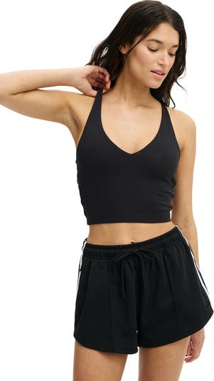 Move with ease in the Ultra Soft Cross Back Tank. This fitted, cropped tank features a scooped neckline, cross-back detail, and an adjustable strap at the back hem for a custom fit. Made from ultra-soft, lightly brushed fabric with four-way stretch, it offers the perfect balance of comfort and performance.
