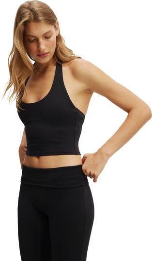 Workout in style in the Ultra Soft Halter Neck Tank. Featuring an internal shelf bra with removable cups, rounded scoop halter neckline, moisture wicking technology, and constructed in ultra soft comfortable stretch fabric.