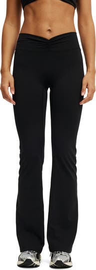 Mix up your workout wardrobe with the ultra soft scrunch front flare. Thes high waisted, slightly flared pants stretch with you however you're working out.