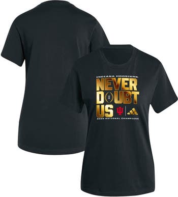 Don'tfumble the chance to own a piece ofIndiana Hoosiershistory! ThisadidasNever Doubt Us T-Shirtacknowledges their spectacularrun to becoming College Football Playoff 2025 National Champions.Itsdynamicdesign is sure to have you reminiscing about all the hard-hitting plays that propelledthe Indiana Hoosierstogridiron glory.Lead the celebrationwith a piece that keeps the championship energy alive.