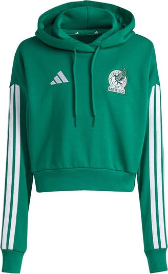 Elevate your look and show your unwavering support for the Mexico National Team with this FIFA x World Cup Alphaskin Cropped Hoodie from adidas. Featuring sew-on stripes on the sleeves and a heat-sealed team crest on the left chest, this hoodie puts your allegiance front and center. The regular fit with a slightly cropped length offers a modern silhouette, while the ribbed cuffs and hem provide a secure and comfortable fit. Experience the soft-touch comfort of the premium blend of cotton, recycled polyester and viscose, making this hoodie the perfect choice for any dedicated Mexico National Team fan.
