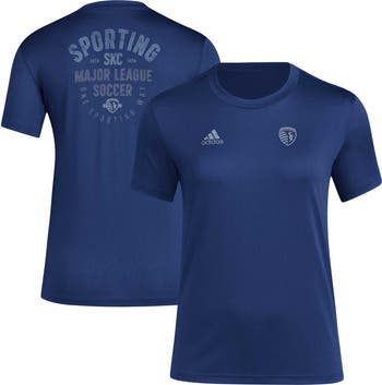 Celebrate your unwavering Sporting Kansas City loyalty with the women's adidas navy Sporting Kansas City Local Stoic T-shirt. Crafted from recycled polyester, this eco-friendly tee features distressed graphics for a vintage touch. Its crew neck and AEROREADY technology ensure comfort and moisture management, making it the perfect choice for cheering on your team in style. Show your support for Sporting Kansas City and the MLS with every wear.