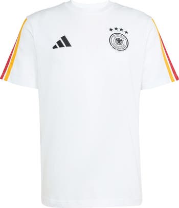 Show your love for the Germany National Team in soft-touch comfort with this adidas FIFA x World Cup Alphaskin T-Shirt. This regular-fit tee features sewn-on sleeve stripes and a crew neck, making it a stylish and comfortable way to support the Germany National Team. The heat-sealed team graphics showcase your unwavering pride, while the premium 100% cotton fabric ensures a durable and comfortable feel all day long.