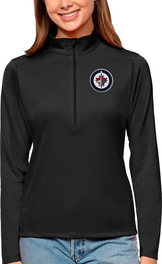 Women's Antigua Black Winnipeg Jets Tribute Quarter-Zip Pullover Top