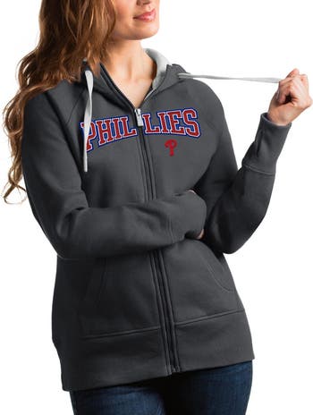 Women's Antigua Charcoal Philadelphia Phillies Team Logo Victory Full-Zip Hoodie
