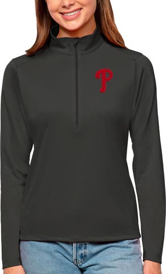 Women's Antigua Charcoal Philadelphia Phillies Tribute Quarter-Zip Pullover Top