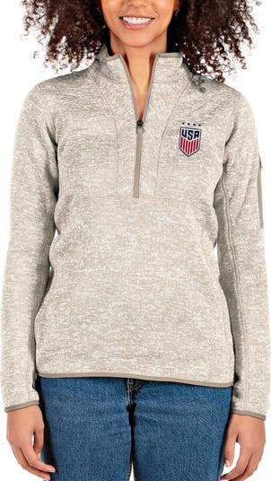 Don't let the weather keep you from showing your support for the USWNT. This Fortune Half-Zip Pullover Jacket by Antigua will help keep you warm in moderate temperatures. The embroidered USWNT patch on the chest will also let you continue to represent the team you love.