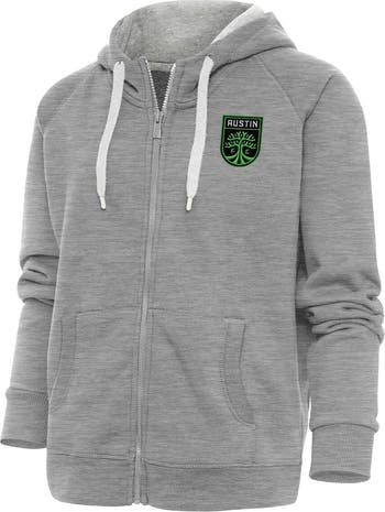 Women's Antigua Heather Gray Austin FC Logo Victory Full-Zip Hoodie