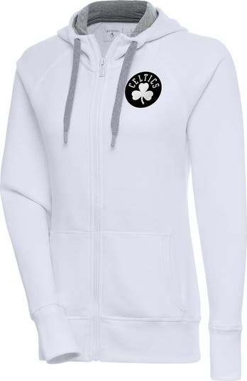 Women's Antigua White Boston Celtics Brushed Metallic Victory Full-Zip Hoodie