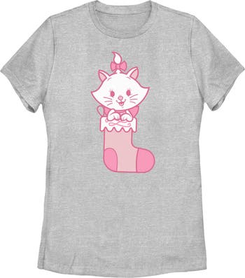 - Own the moment with this stylish new Christmas women's tee that is perfect for the holidays! Featuring the adorable kitten, Marie, hanging in a pink Christmas stocking.