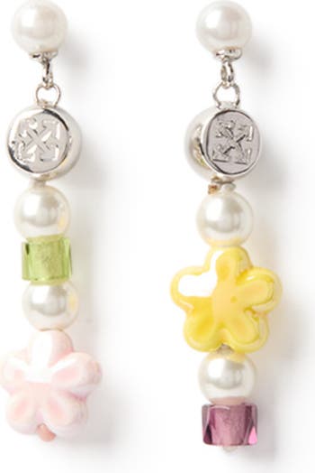 SILVER PLATED - ARROW DESIGN - ARROW PEARL & BEADS EARRINGS BRASS + SYNTHETIC PEARL + BEADS