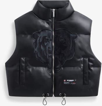Off Season continues to redefine fan apparel with high-end designs that will take any outfit to new heights. This heavyweight Chicago Bears cropped puffer vest from the Off Season x NFL collection is crafted from smooth faux leather, ensuring you have an MVP-worthy fit for game day. Designed with a cropped hem and an adjustable bungee waistband for a custom fit, it delivers a fashion-forward silhouette that pairs effortlessly with any look. Finished with a funnel-neck collar with embroidered team detailing and a tonal corduroy logo at the front, this piece elevates your style and team spirit with subtle elegance.