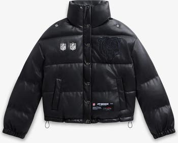 Women's Black Chicago Bears Faux Leather Puffer Jacket