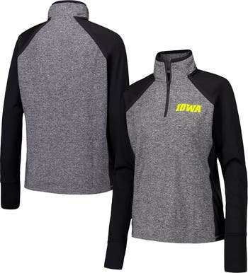 Women's Black/Heather Gray Iowa Hawkeyes Finalist Raglan Quarter-Zip Jacket