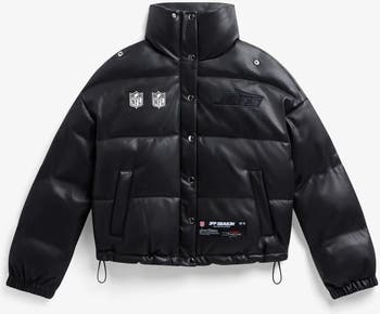 Women's Black New York Jets Faux Leather Puffer Jacket