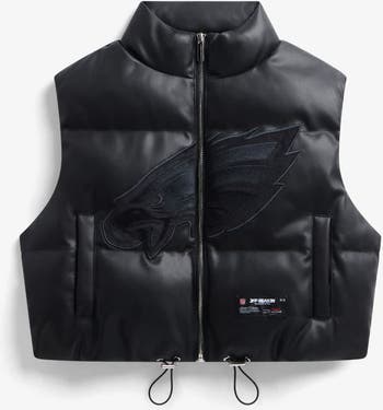 Women's Black Philadelphia Eagles Faux Leather Cropped Puffer Vest