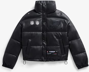 Women's Black Philadelphia Eagles Faux Leather Puffer Jacket