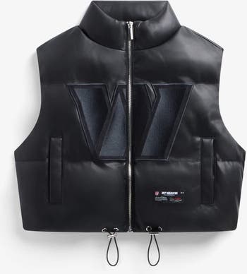 Women's Black Washington Commanders Faux Leather Cropped Puffer Vest