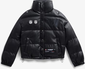 Women's Black Washington Commanders Faux Leather Puffer Jacket