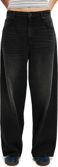 The on-trend boyfriend super baggy jean is a classic cut addition to your everyday collection. This high-rise rigid denim features a 5-pocket design in a baggy straight leg silhouette, full length to the ankle.