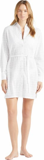 Delicate Broderie Anglaise gives this shirt dress a sophisticated aura. Crafted from cotton, a tie belt and the Vilebrequin 'turtle shell' plaque on the back add a refined touch.