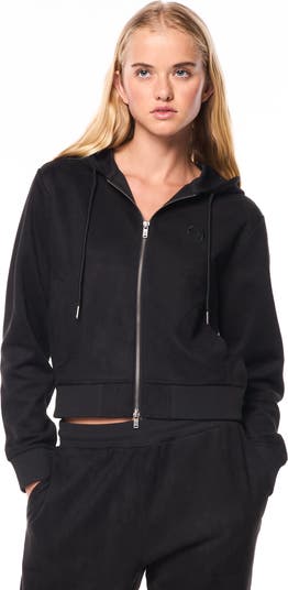 An elevated take on a wardrobe staple, the Women's Camoscio Hoodie is crafted from premium faux suede fabric for an ultra-soft feel and refined texture. Blending comfort with considered design, this Hoodie features a spacious double-layer hood, a kangaroo pocket for casual utility, with perforated double knit faux suede design and rib-knit accents. Perfect for layering, the Women's Camoscio Hoodie delivers everyday ease with a luxe finish.Pir it with the Women's Camoscio Pant (sold separately) for the full set
