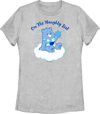 - Strut your stuff with this stylish new Christmas women's tee that is perfect for the holidays! Featuring your favorite naughty bear, Grumpy Bear, holding a snowflake beneath the funny text "On the Naughty List" across the front.
