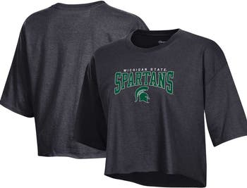 The Champion Heather Charcoal Michigan State Spartans Boyfriend Cropped T-Shirt is the perfect way to show your support for the Spartans. With its cropped hem and screen-printed graphics, this shirt is both stylish and comfortable. The unfinished hem adds a touch of edge, while the cotton material ensures you'll stay cool and comfortable all game long. Whether you're cheering on the Spartans at the stadium or just hanging out with friends, this shirt is sure to turn heads.