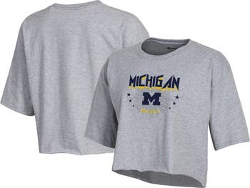 The Women's Champion Heather Gray Michigan Wolverines Boyfriend Cropped T-Shirt is the perfect way to show your support for the Michigan Wolverines. Made from a soft cotton and polyester blend, this cropped tee features screen-printed graphics that proudly display your team pride. The unfinished cropped hem adds a stylish touch, while the boyfriend fit provides a comfortable and relaxed feel. Whether you're cheering on the Wolverines at the game or just showing your support around town, this t-shirt is sure to become a favorite.