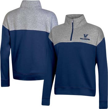 The Women's Champion Navy Villanova Wildcats Color-Blocked Quarter-Zip Sweatshirt is the perfect way to show your support for the Villanova Wildcats. Made from a comfortable cotton and polyester blend, this midweight sweatshirt features a fleece lining for added warmth during chilly game days. Screen-printed graphics proudly display your Villanova Wildcats pride, while the mock neck and zipper pull add a touch of style. Whether you're cheering from the stands or simply showing your support, this sweatshirt is the perfect way to represent the Villanova Wildcats in style.