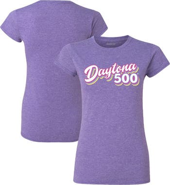 Women's Checkered Flag Heathered Purple Daytona 500 Retro T-Shirt