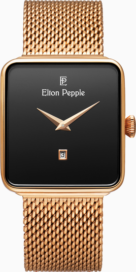 - Strap: Metal Mesh, Rose Gold PVD Stainless Steel 316, Safety Clasp