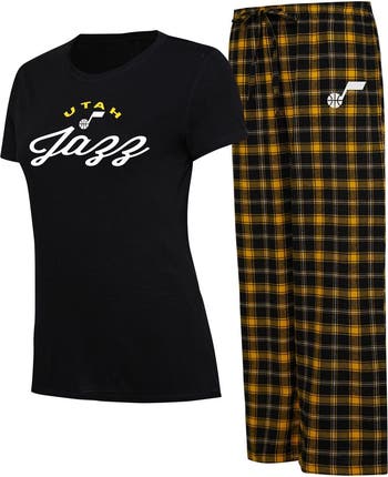 Women's College Concepts Black/Gold Utah Jazz Arctic T-Shirt & Flannel Pants Sleep Set