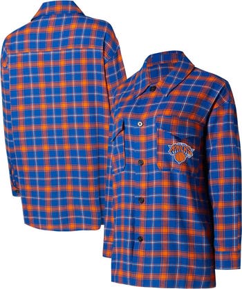 Women's College Concepts Blue/Orange New York Knicks Boyfriend Button-Up Nightshirt
